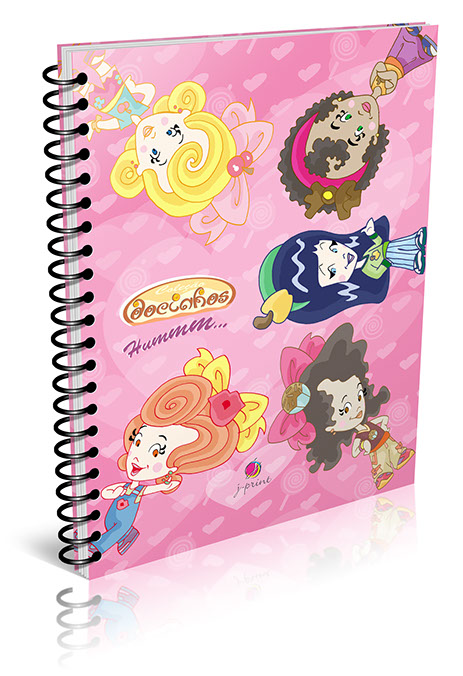 Arte para contra-capa de caderno universitário da licença "Coleção Docinhos" para a empresa J. Print. Lápis, Photoshop, Ilustrator e Corel Draw.