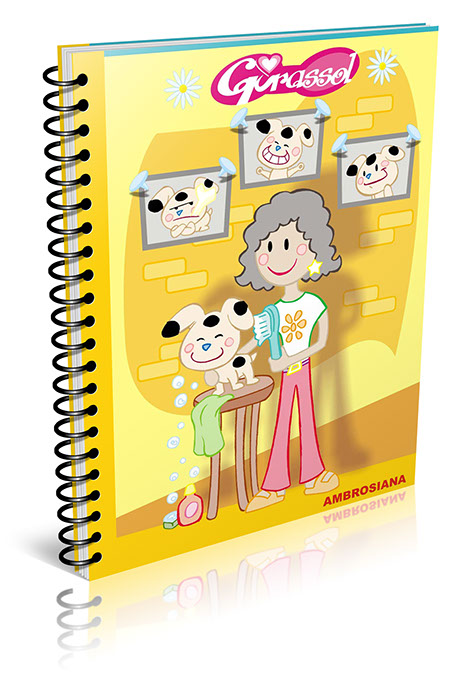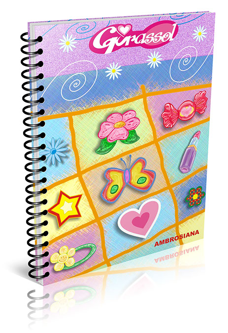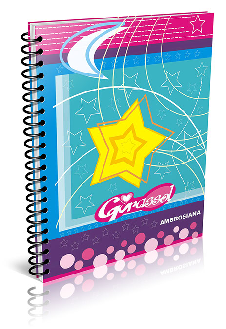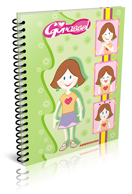 Layout para capa de caderno universitário da licença "Coleção Girassol" para a empresa Ambrosiana. Lápis, Photoshop, Ilustrator e Corel Draw.