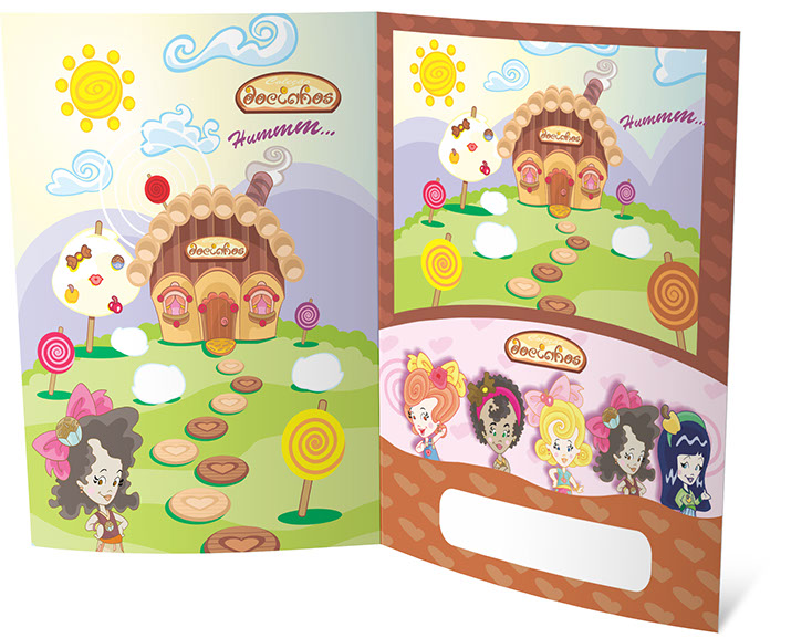 Contra-capas de caderno para empresa de materiais escolares do licenciamento "Coleção Docinhos",