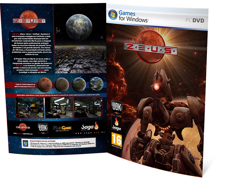Capa do DVD - TCC do curso PLAYGAME da SAGA - demo do jogo chamado Z.E.U.S. Técnica: Manipulação e fusão de imagens, Ilustrações, Photoshop.