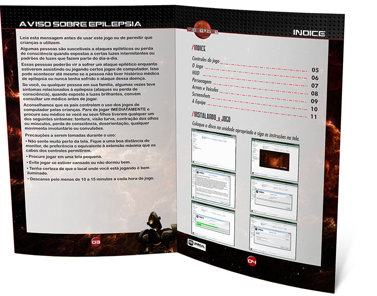 Página 3 e 4 do Encarte da demo do jogo chamado Z.E.U.S