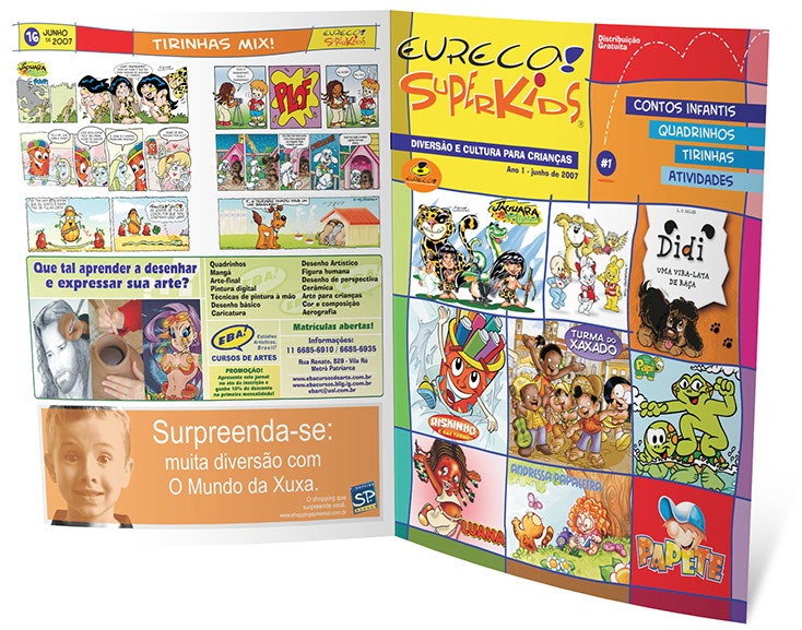 Capa aberta do jornal infantil "Eureca! Superkids" #1, Eureca!, 2007.
