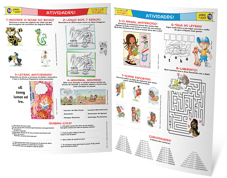 Páginas 14 e 15 do jornal infantil "Eureca! Superkids" #2, Eureca!, 2007.