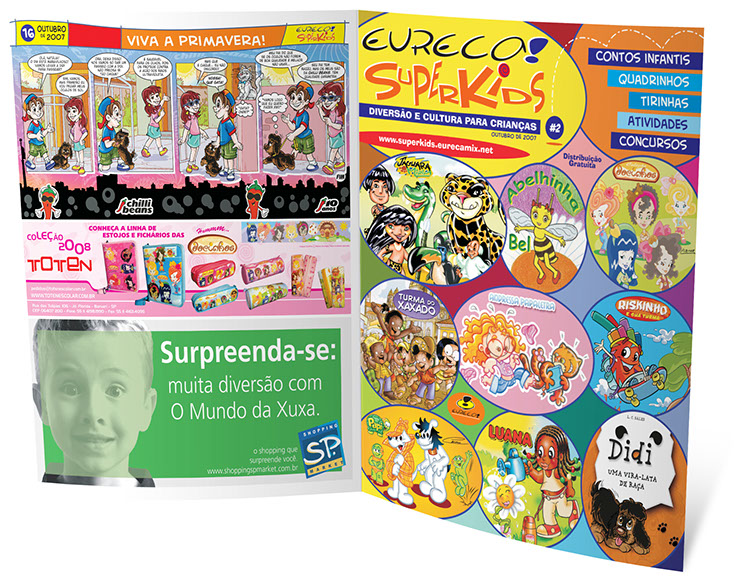 Capa aberta do jornal infantil "Eureca! Superkids" #2, Eureca!, 2007.