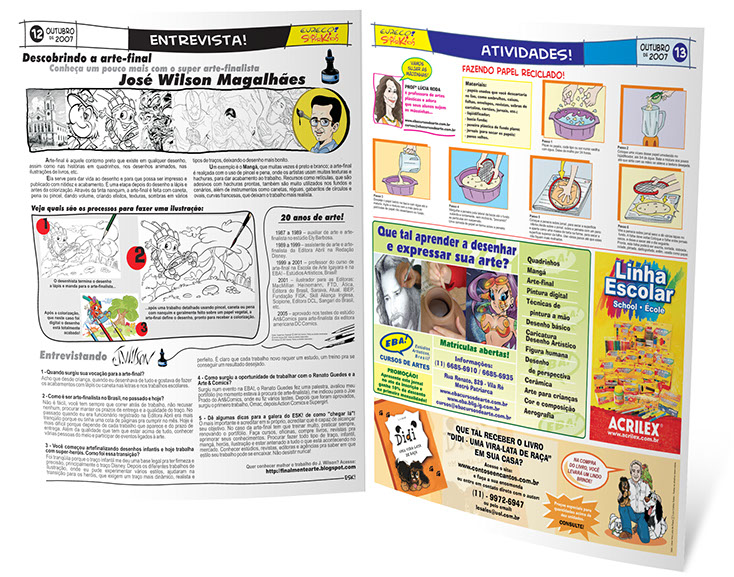 Páginas 12 e 13 do jornal infantil "Eureca! Superkids" #2, Eureca!, 2007.