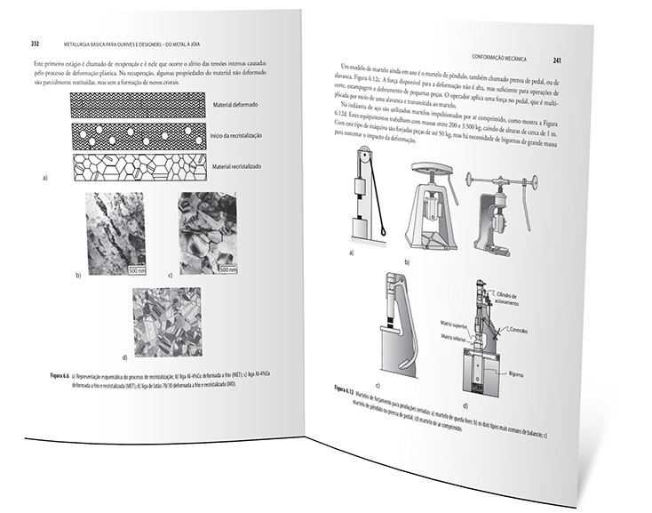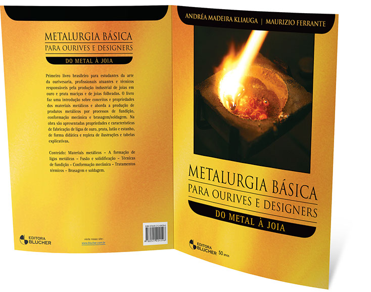 Capa aberta do livro "Metalurgia Básica para Ourives e Designers",