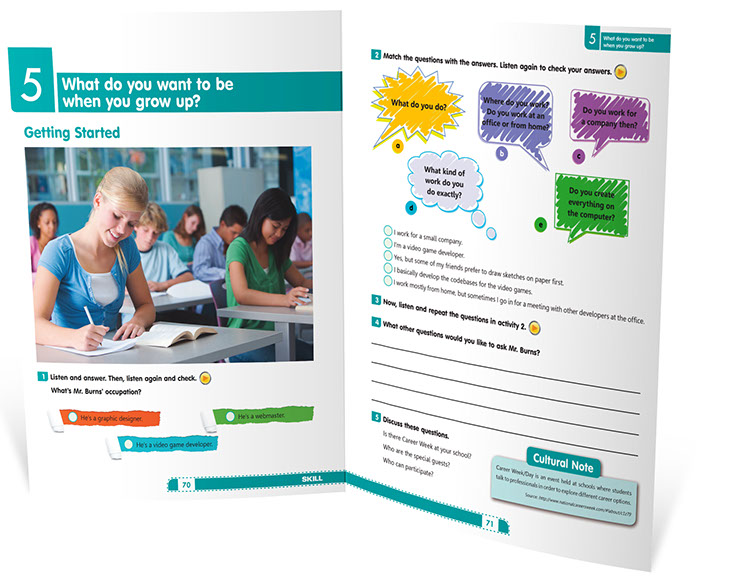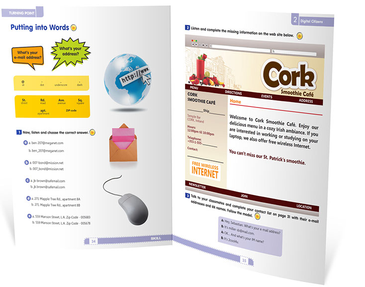 Projeto gráfico e diagramação para livro de inglês para público jovem.