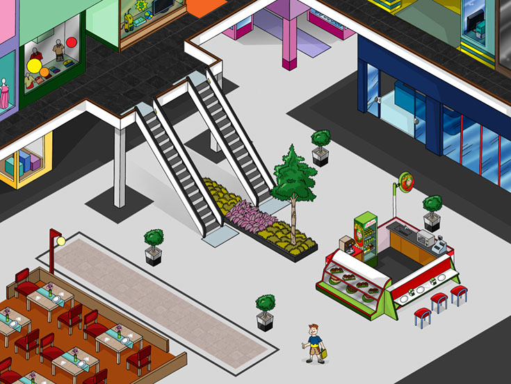 Cenário em perspectiva isométrica para aplicativo com sistema Android. Lápis, Ilustrator e Photoshop.2