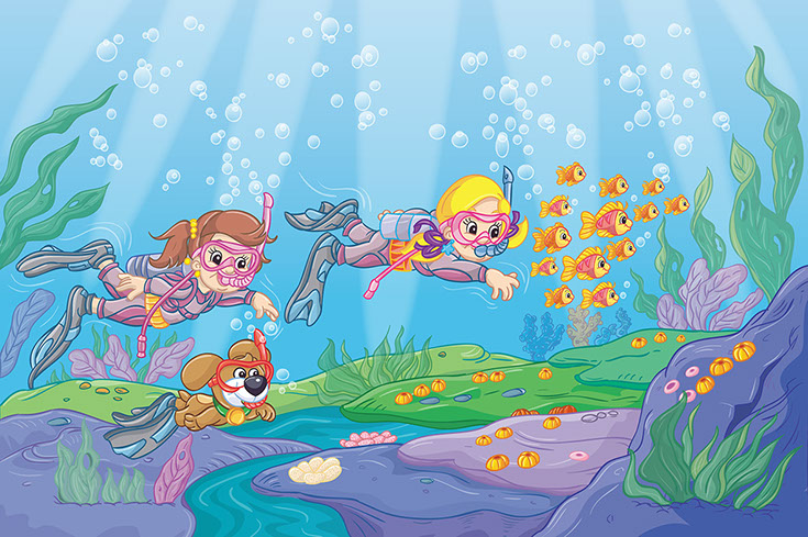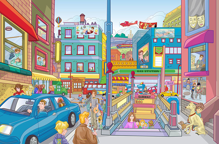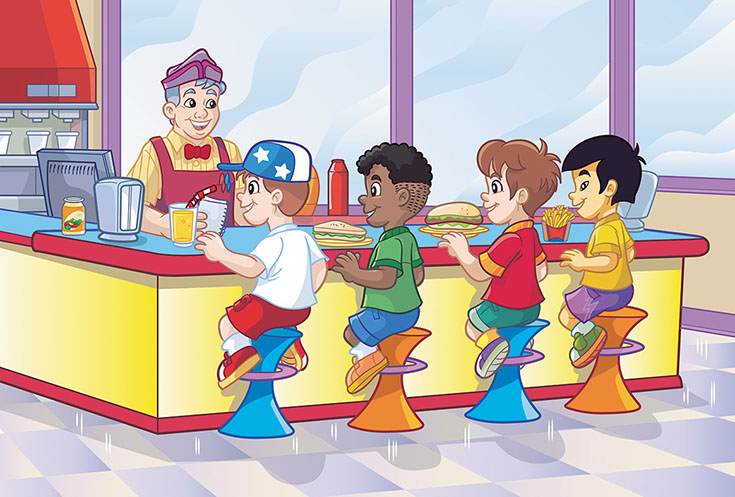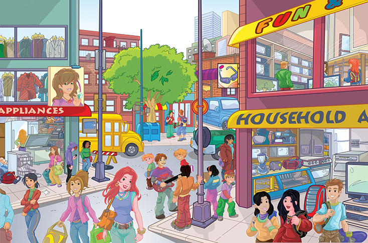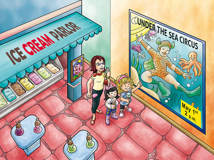 Ilustra para livro infantil de inglês da Wizard. Lápis, Ilustrator e Photoshop.