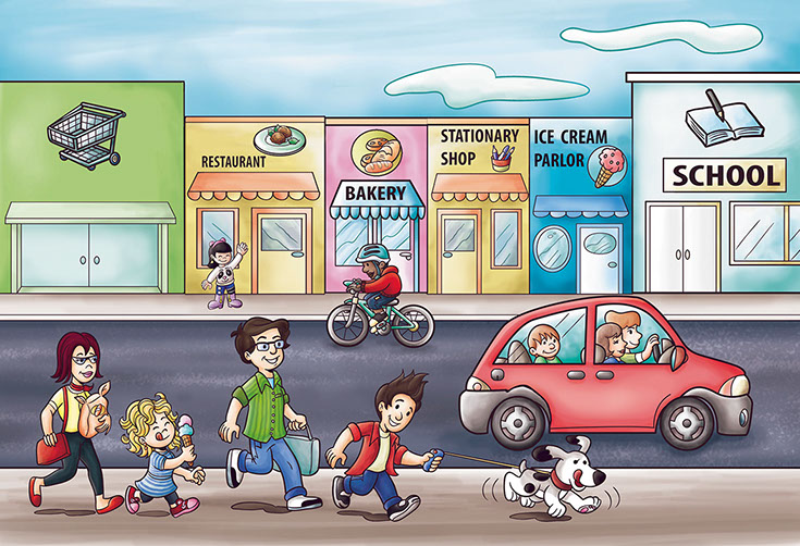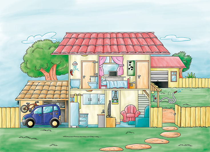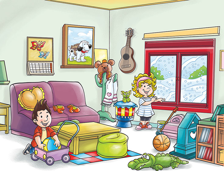 Ilustra para livro infantil de inglês da Skill. Lápis, Ilustrator e Photoshop.