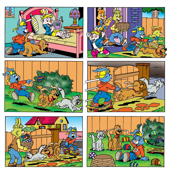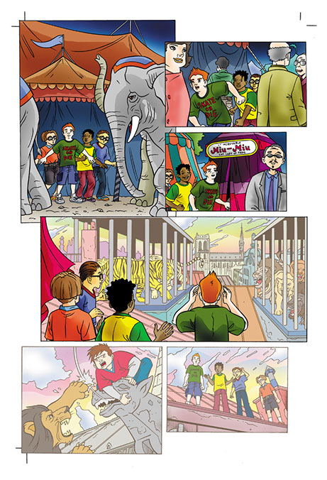 Colorização para arte de quadrinhos de caderno de atividades pelo Magic Eyes Studio.