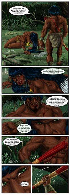 Página 8 da HQ "Jaguara - Guerreira e Soberana", 2005, editora Via Lettera. Lápis, nanquim e Photoshop.
