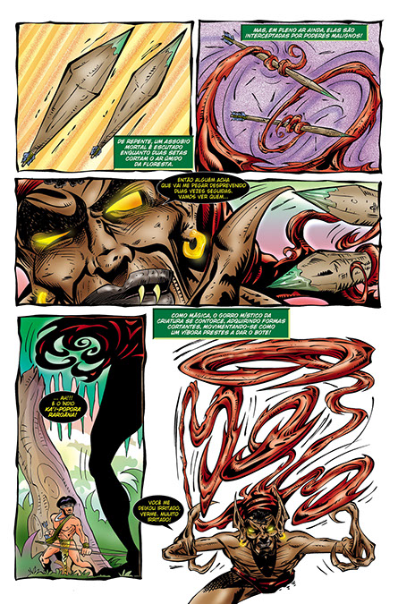 Página 101 da HQ "Jaguara - Guerreira e Soberana", 2005, editora Via Lettera. Lápis, nanquim, Photoshop com letreiramento no Corel Draw.