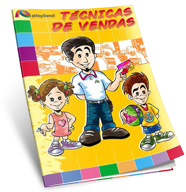 Layout para projeto de cartilha de técnicas de vendas para o PLAYLAND. Indesign, Lápis, Photoshop e Corel Draw.