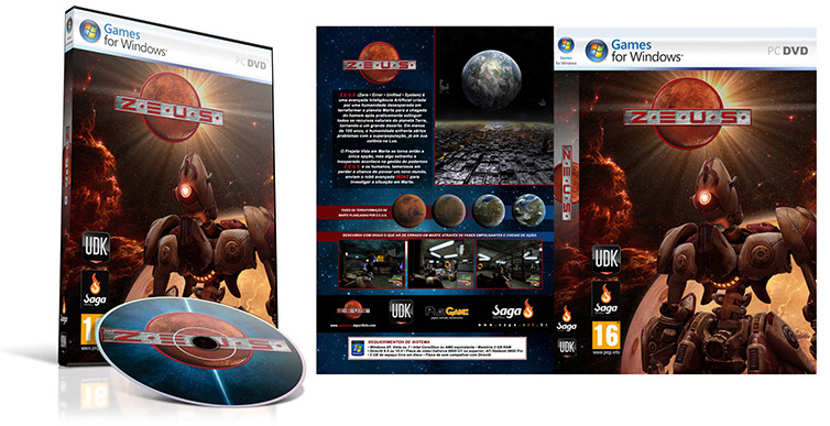 Capa do DVD - TCC do curso PLAYGAME da SAGA - demo do jogo chamado Z.E.U.S. Técnica: Manipulação e fusão de imagens, Ilustrações, Photoshop.