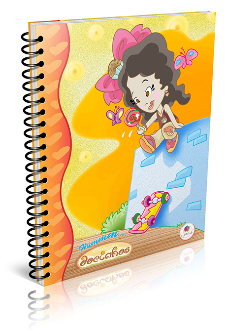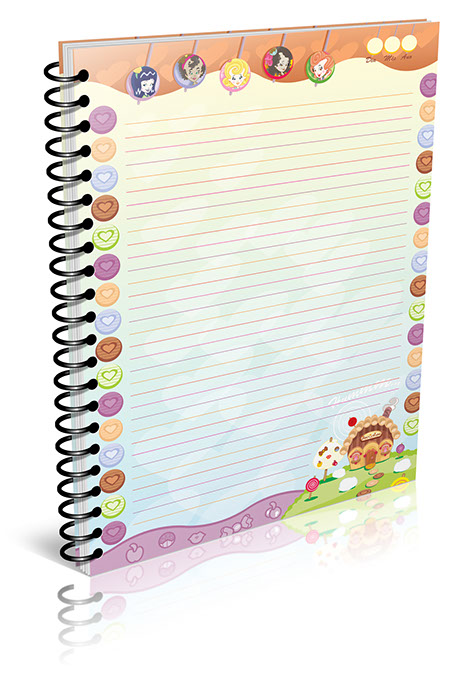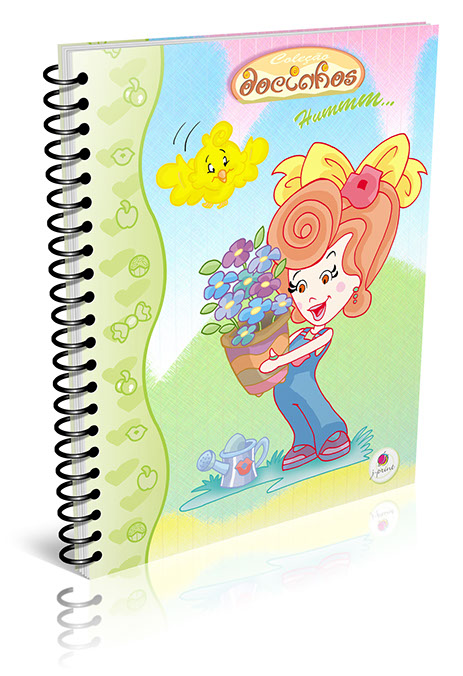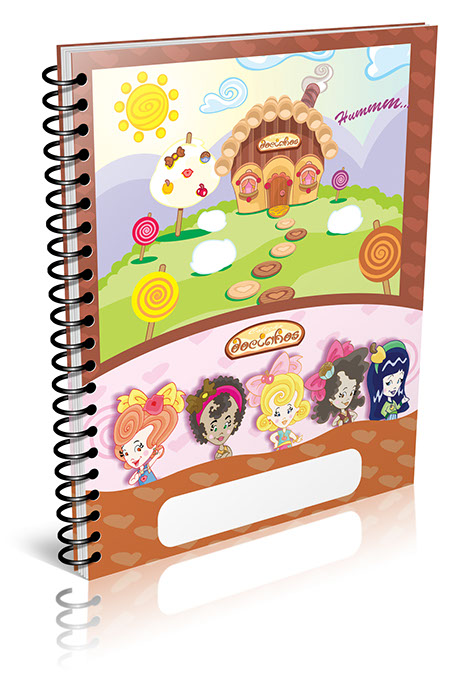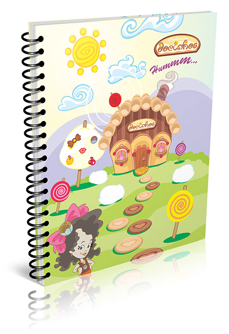 Arte para contra-capa de caderno universitário da licença "Coleção Docinhos" para a empresa J. Print. Lápis, Photoshop, Ilustrator e Corel Draw.