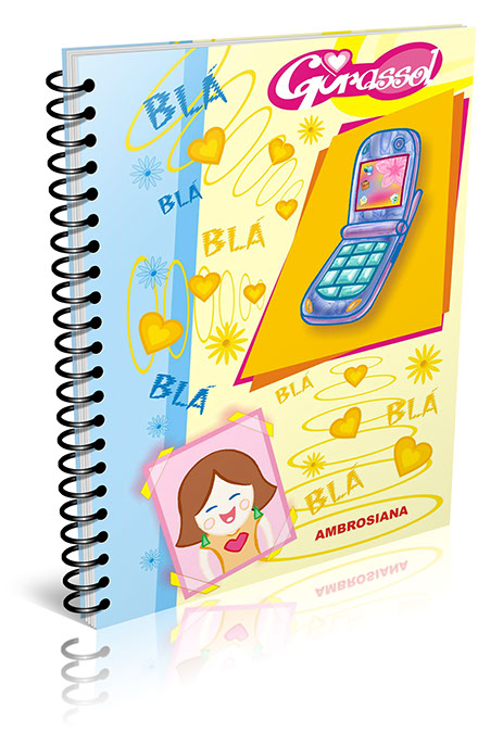 Layout para capa de caderno universitário da licença "Coleção Girassol" para a empresa Ambrosiana. Lápis, Photoshop, Ilustrator e Corel Draw.
