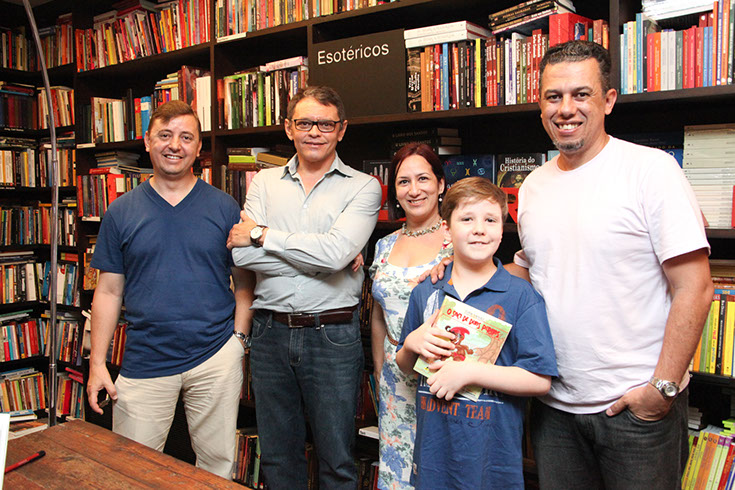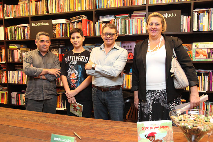 Djair Galvão posa com os leitores Luis, Daniel e Miriam.